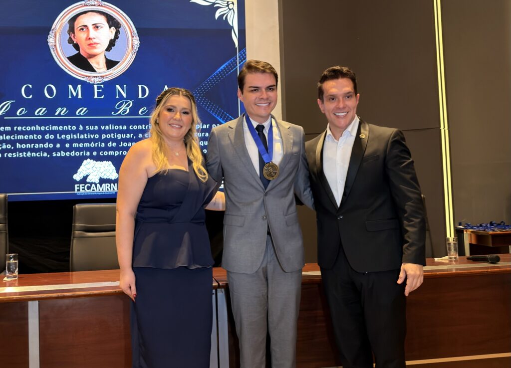 O vereador e presidente da Câmara de Parnamirim, Dr. César Maia, recebeu uma importante homenagem da FECAM durante solenidade conduzida pelo presidente Eriko Jácome. A Medalha Joana Bessa foi entregue em reconhecimento ao compromisso, dedicação e relevante contribuição ao fortalecimento do Poder Legislativo Municipal, destacando o trabalho realizado ao longo de 2025.